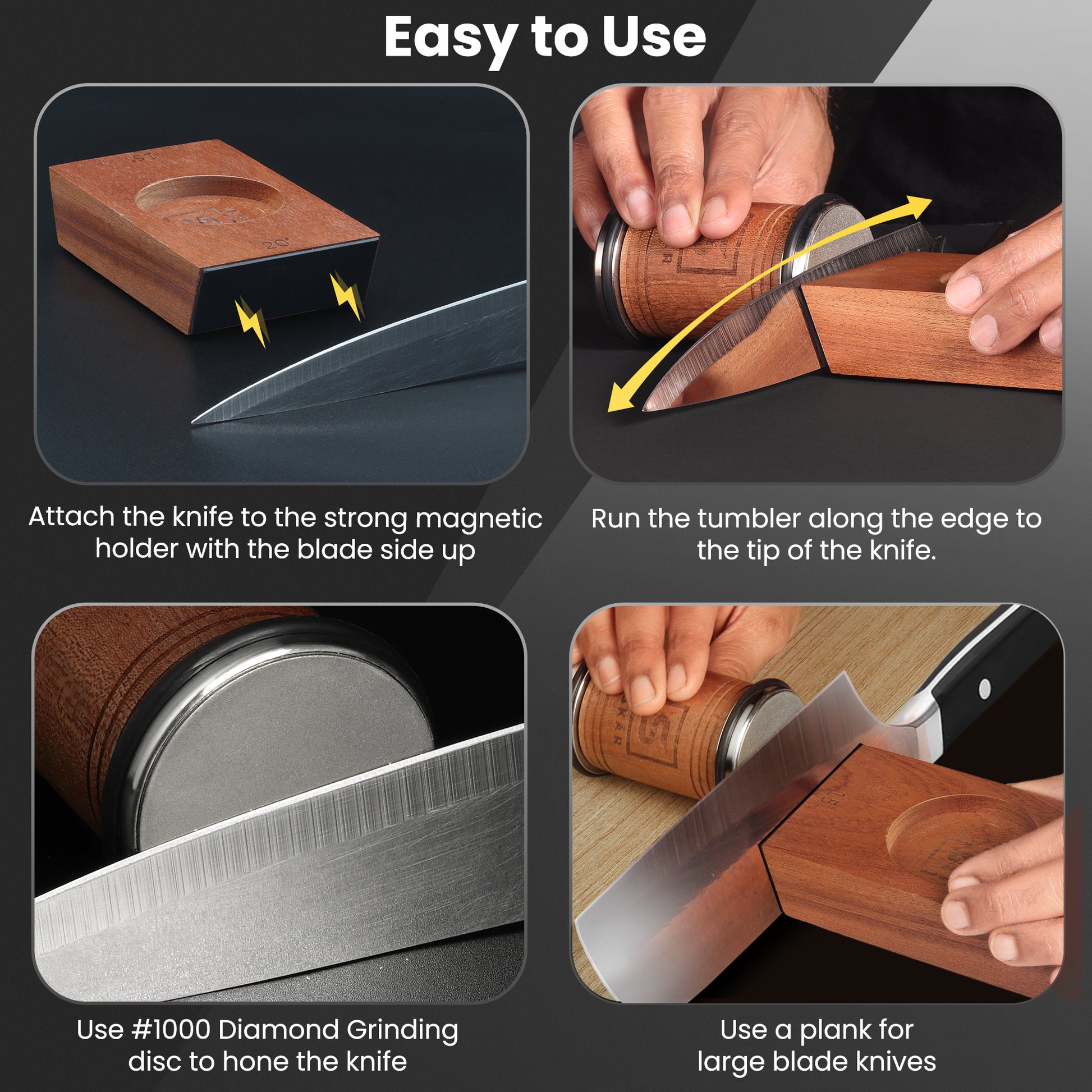 - Knife Sharpening Kit: Our knife sharpener roller is thoughtfully designed with powerful magnetic knife sharpening angle guide supports on both sides of the base, providing unmatched stability and precision during sharpening